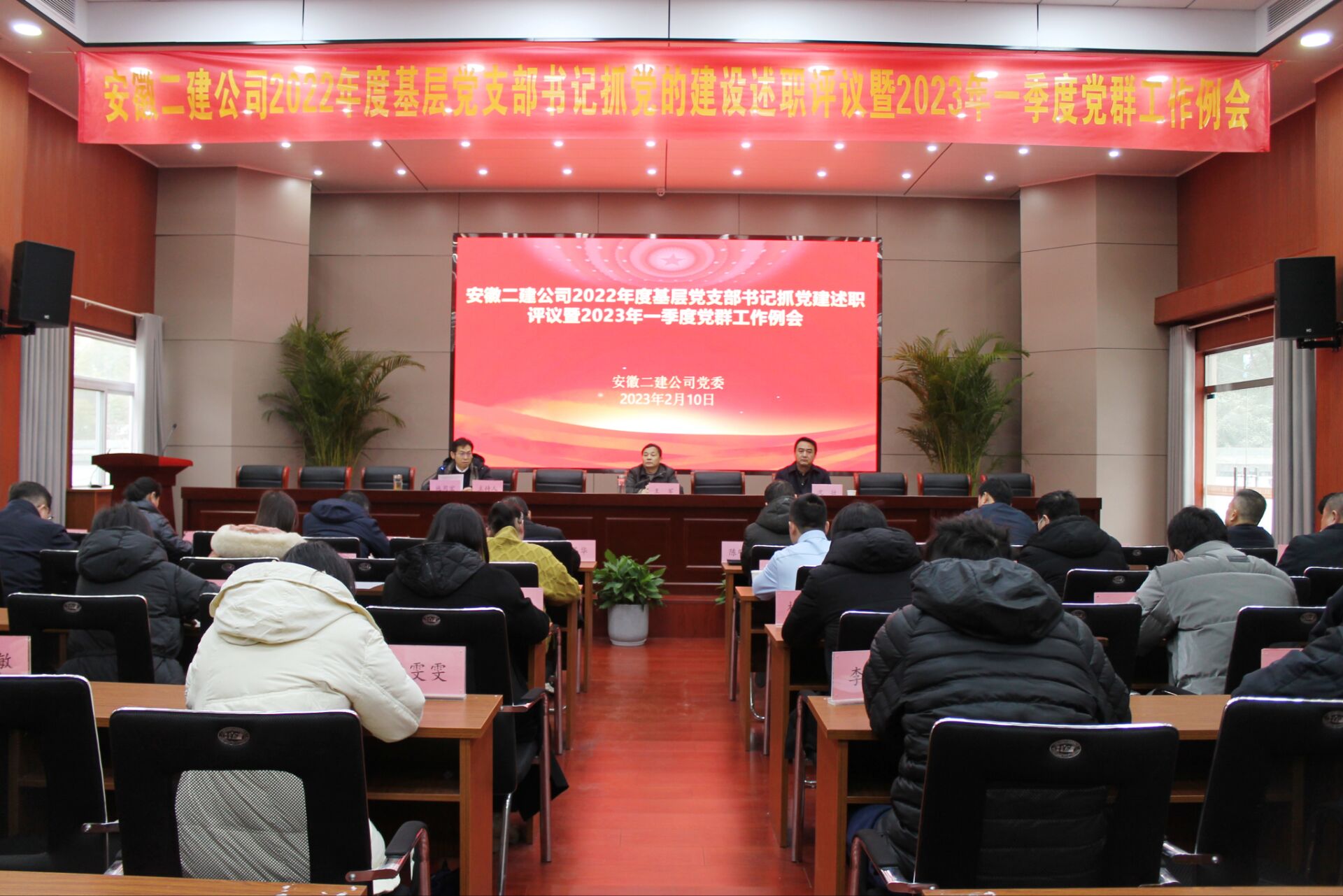 2月10日下午,安徽二建公司在新會(huì)議室召開2022年度基層黨支部書記抓黨的建設(shè)述職評議暨2023年一季度黨群工作例會(huì)。黨委副書記、工會(huì)主席王軍,黨委委員、紀(jì)委書記沈壯出席會(huì)議,黨委工作部主任施用宏主持會(huì)議。