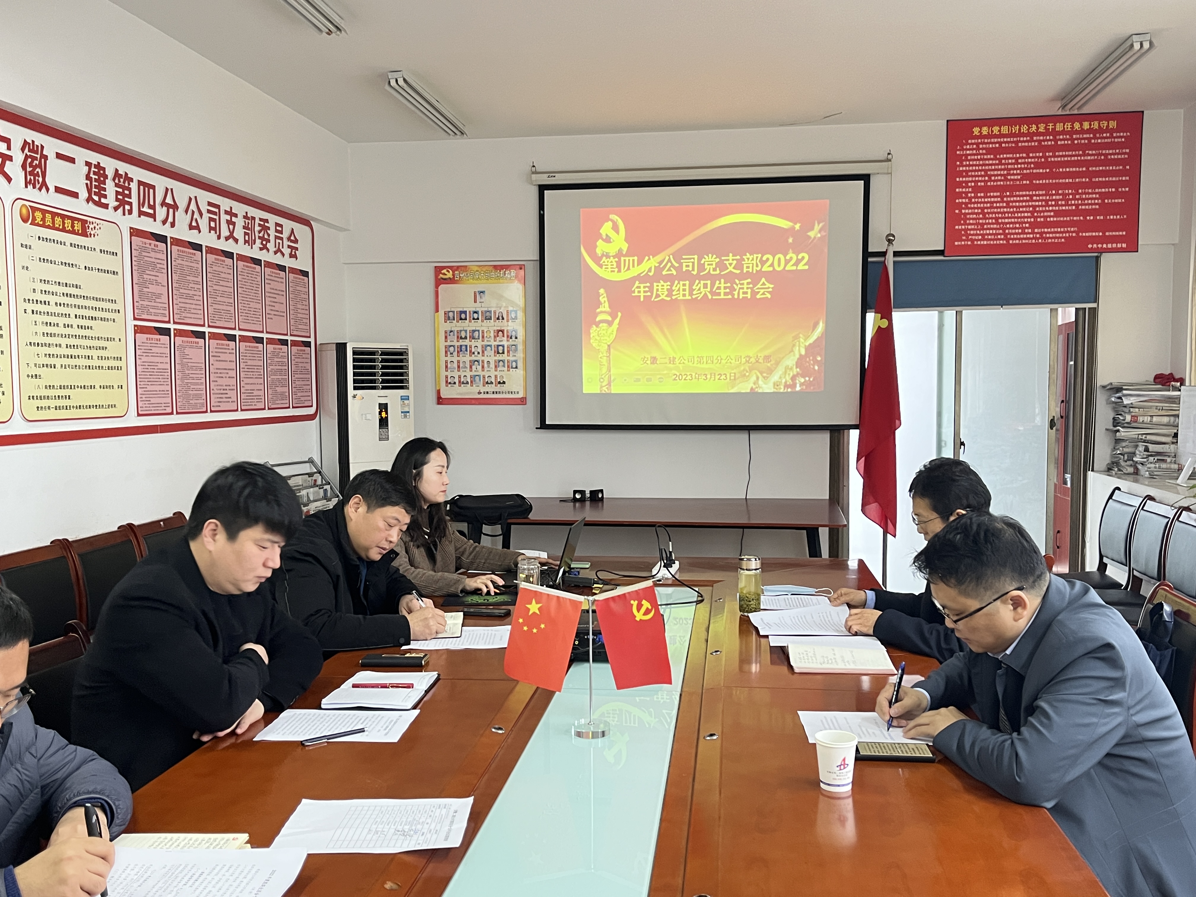 3月23日上午,按照公司黨委統(tǒng)一部署,第四分公司黨支部在會(huì)議室召開(kāi)了2022年度支部組織生活會(huì)。公司黨委副書(shū)記、總經(jīng)理李建成到會(huì)指導(dǎo),分公司支委成員參會(huì)。