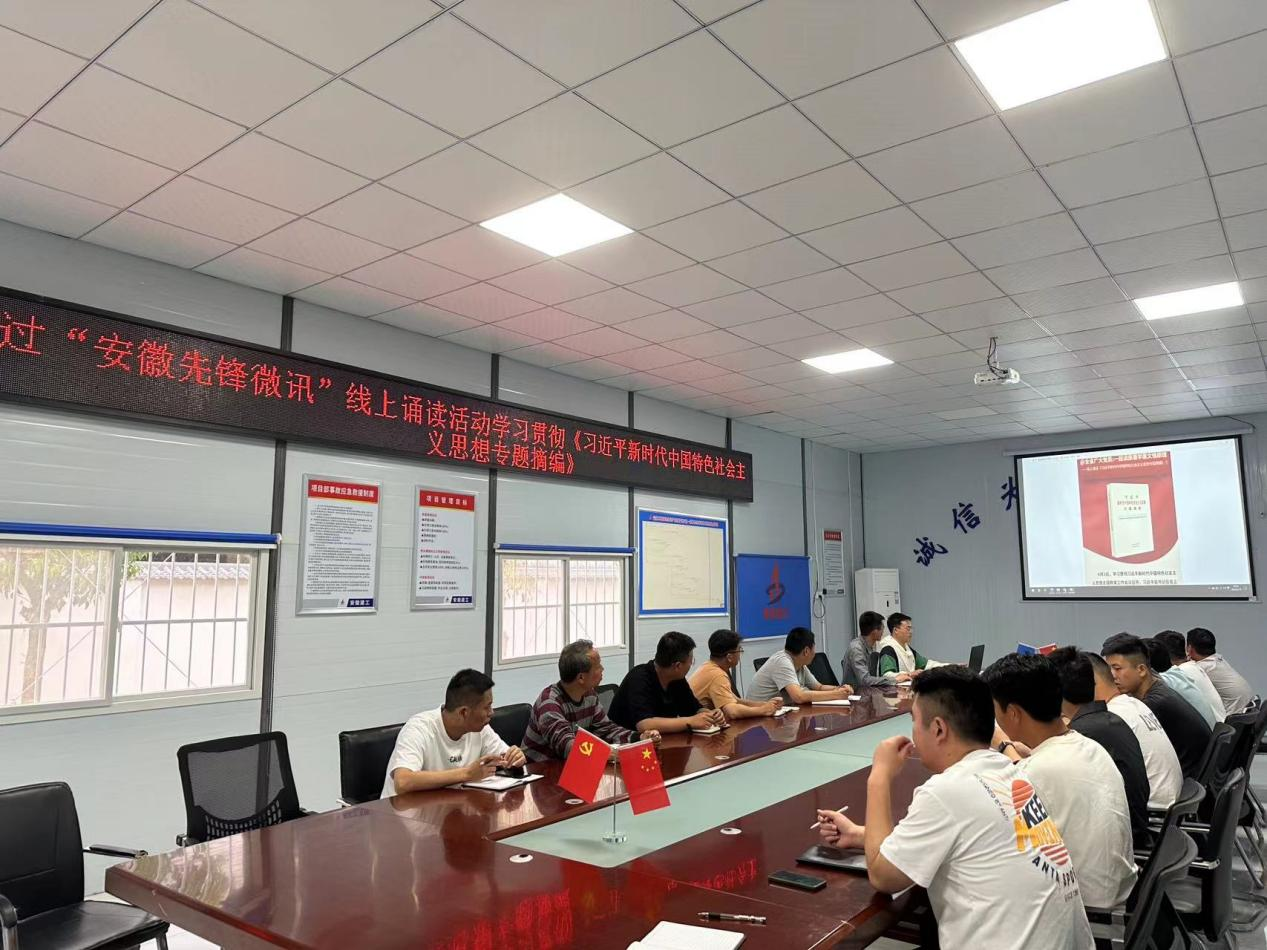 為深入學(xué)習(xí)貫徹習(xí)近平新時(shí)代中國特色社會(huì)主義思想主題教育,深刻領(lǐng)會(huì)新時(shí)代中國特色社會(huì)主義思想的精神實(shí)質(zhì)和豐富內(nèi)涵。宿徐現(xiàn)代產(chǎn)業(yè)園片區(qū)市政項(xiàng)目部組織職工使用“安徽先鋒微訊”線上誦讀《習(xí)近平新時(shí)代中國特色社會(huì)主義思想專題摘編》。