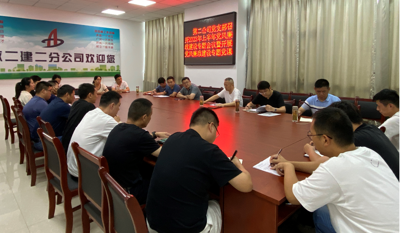 7月7日下午,第二公司黨支部召開2023年上半年黨風(fēng)廉政建設(shè)專題會議暨開展黨風(fēng)廉政建設(shè)專題黨課活動。會議由黨支部書記黃業(yè)云主持,第二公司黨支部在肥黨員、機(jī)關(guān)中層管理人員等參加會議。