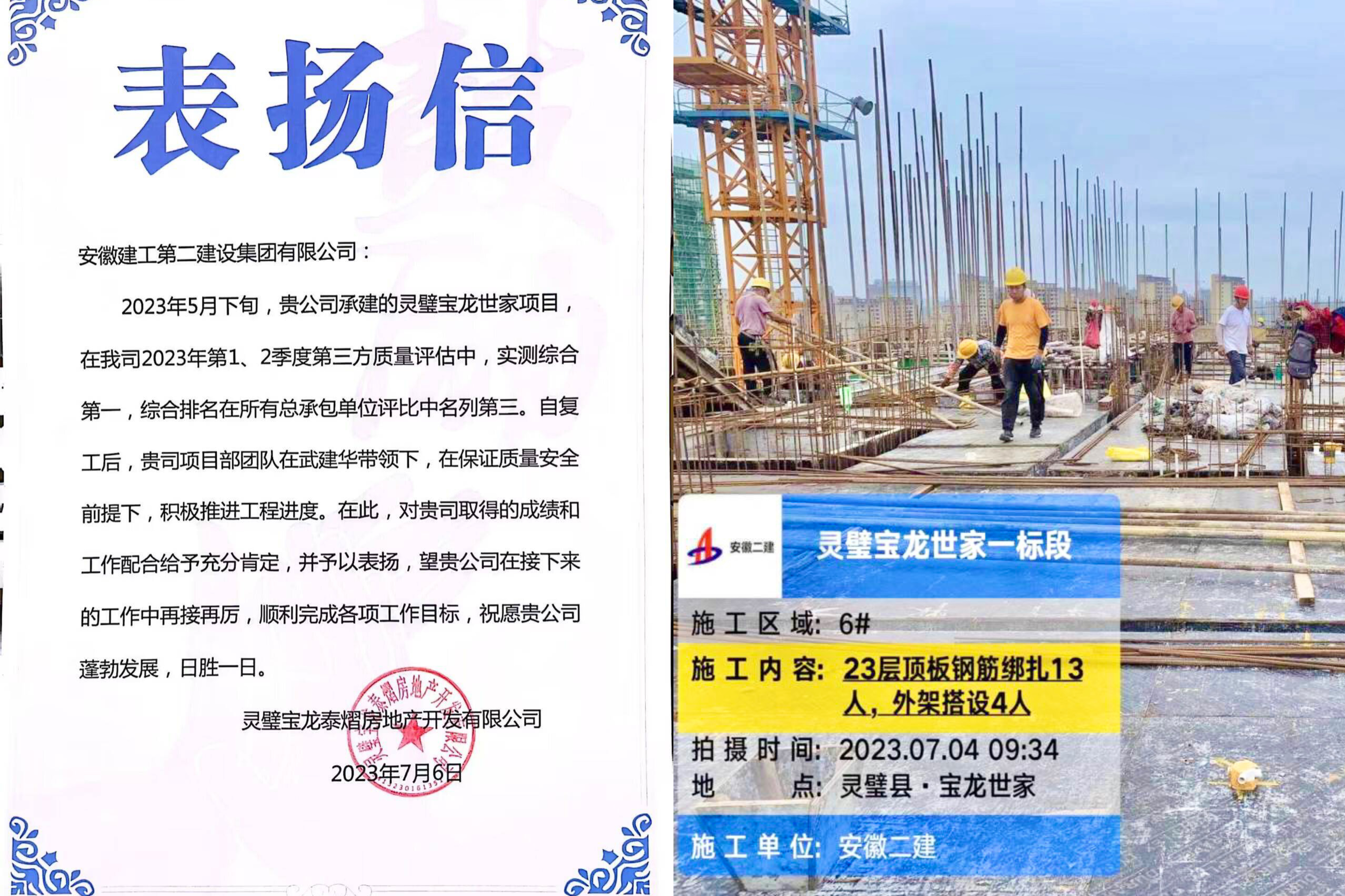 聚焦勞動競賽黨建引領(lǐng),帶出項(xiàng)目隊(duì)伍“新氣象”。在勞動競賽實(shí)施過程中,項(xiàng)目部緊緊圍繞競賽目標(biāo)開展“三號聯(lián)創(chuàng)”,結(jié)合實(shí)際設(shè)立“黨員先鋒崗”“工人先鋒隊(duì)”和“青年突擊隊(duì)”,有效提升組織創(chuàng)造力、凝聚力和戰(zhàn)斗力。在重點(diǎn)任務(wù)、關(guān)鍵節(jié)點(diǎn)和重要環(huán)節(jié)中,充分發(fā)揮“兩個作用”,為項(xiàng)目建設(shè)提供“紅色動力”。在寶龍集團(tuán)今年一、二季度第三方質(zhì)量評估中綜合排名位列前三,項(xiàng)目部積極申報了省住建廳2023年“紅色工地”試點(diǎn)項(xiàng)目,持續(xù)提升黨建引領(lǐng)推動項(xiàng)目建設(shè)。
