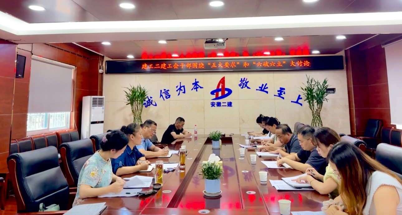 8月18日下午,建工二建工會干部圍繞“思想大解放、環(huán)境大優(yōu)化、能力大提升、作風大轉(zhuǎn)變、任務大落實”和“六破六立”開展大討論。工會副主席、女工委主任王俊主持會議,公司工會工作人員、所屬各單位工會(副)主席、綜合辦工會干事參會。
