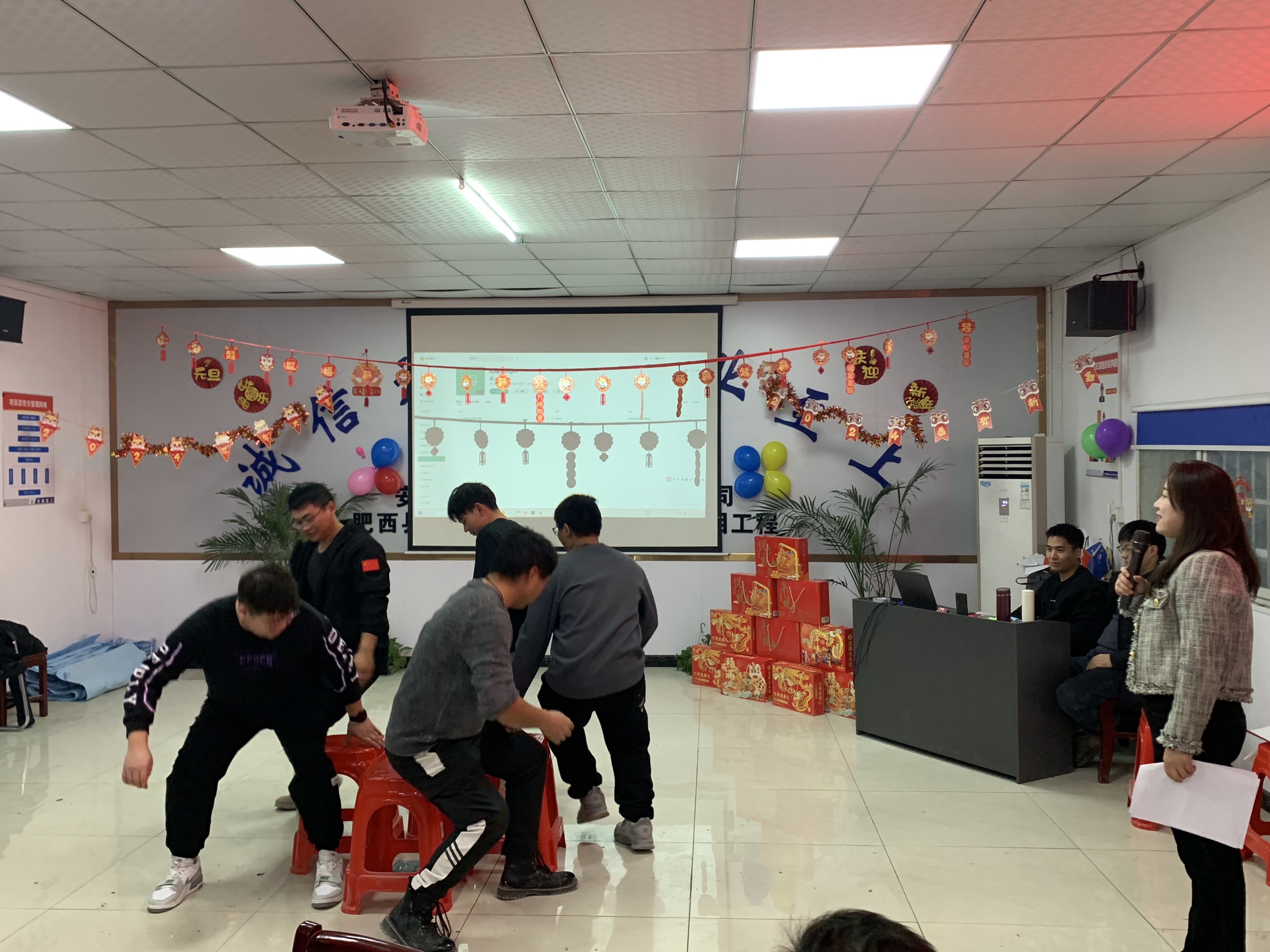 在一曲《相親相愛(ài)》中,活動(dòng)拉開(kāi)了帷幕。本次活動(dòng)設(shè)計(jì)了擊鼓傳花、搶凳子、比劃我猜、歌王爭(zhēng)霸、真假難辨等游戲,現(xiàn)場(chǎng)既緊張激烈,又妙趣橫生,大家積極參與,全力以赴,充滿了歡聲笑語(yǔ)。由第四分公司文藝骨干李丹然帶來(lái)的魔術(shù)《魚(yú)躍龍門》引來(lái)了全場(chǎng)陣陣掌聲,將活動(dòng)推向了高潮?;顒?dòng)的最后,在場(chǎng)所有員工將新年的心愿和期望寫在了心愿卡上,演職人員上臺(tái)合影留念,整場(chǎng)活動(dòng)圓滿落幕。