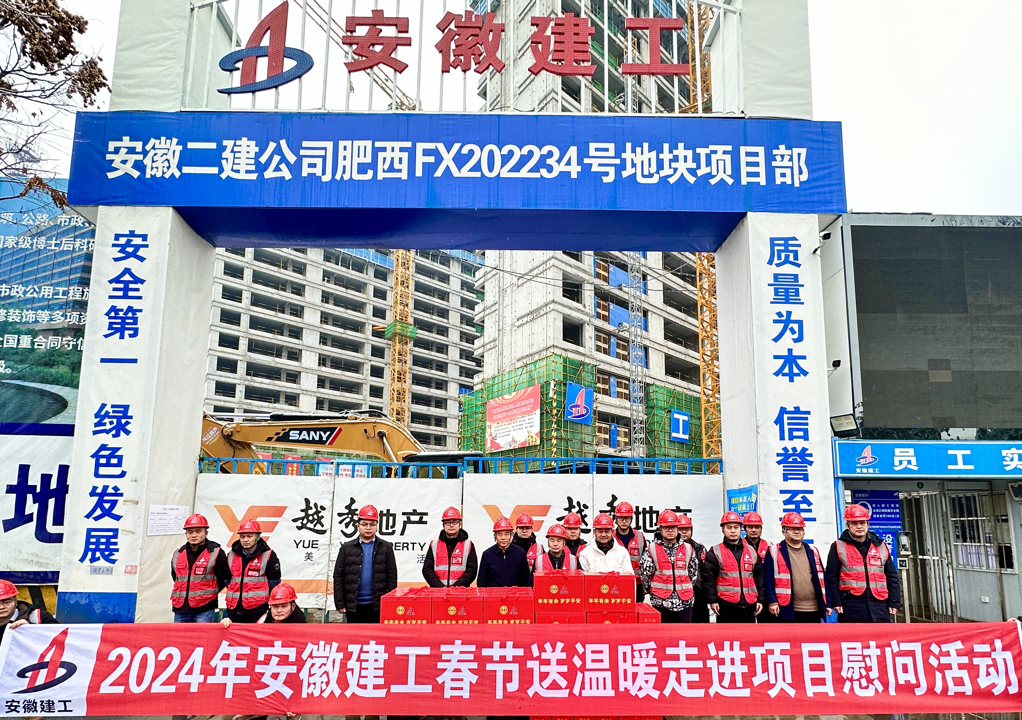 在二建肥西FX202234號(hào)地塊項(xiàng)目部,徐文聯(lián)帶隊(duì)開(kāi)展了2024年安徽建工春節(jié)“送溫暖”走進(jìn)項(xiàng)目部慰問(wèn)活動(dòng),向堅(jiān)守一線崗位的項(xiàng)目管理人員和工人派發(fā)節(jié)日慰問(wèn)品,對(duì)大家一年以來(lái)的辛苦工作表示感謝,并送上新春誠(chéng)摯的祝福和問(wèn)候。