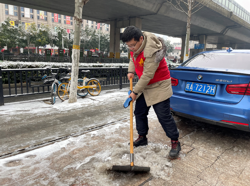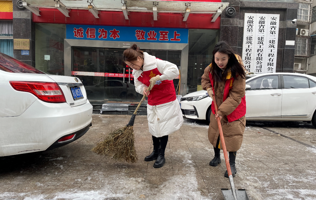 合肥迎來低溫雨雪冰凍天氣,城區(qū)多條道路“刷白”,給群眾出行帶來不便。2月5日,建工二建第四公司青年志愿者,以雪為令、迅速行動(dòng),開展掃雪除冰“大作戰(zhàn)”,用一抹“志愿紅”,溫暖整個(gè)寒冬。