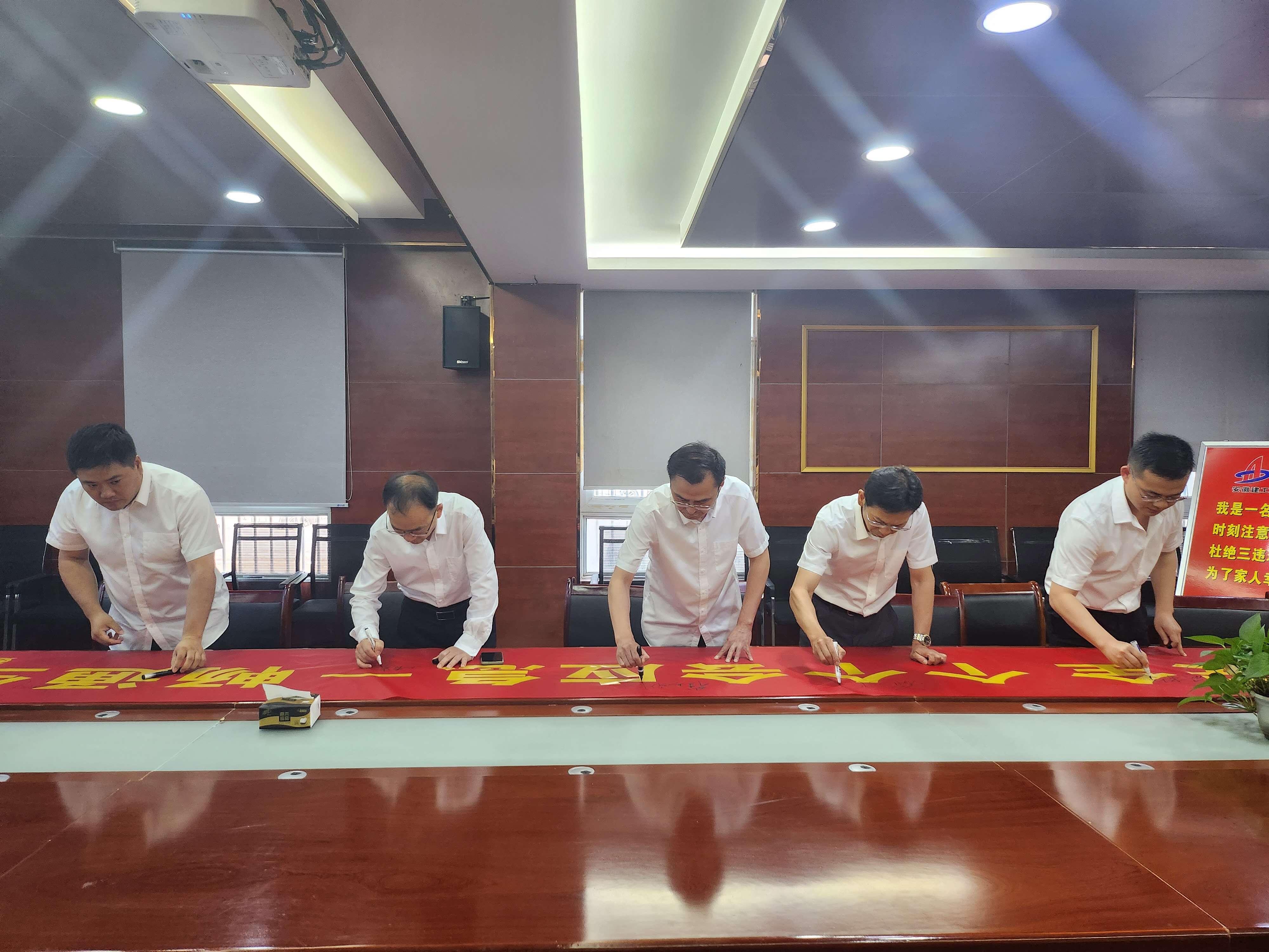 “我是一名安全建工人,我鄭重宣誓:時(shí)刻注意安全,遵守安全法規(guī);履行安全職責(zé),提高安全技能;杜絕三違現(xiàn)象,保證四不傷害;強(qiáng)化紅線意識(shí),促進(jìn)安全發(fā)展;為了家人幸福、企業(yè)發(fā)展,誓做建工安全人!”伴隨著一陣陣響亮的宣誓聲,聯(lián)合簽名、觀看安全生產(chǎn)月主題宣傳片及公益廣告等,第一分公司2024年“安全生產(chǎn)月”正式拉開帷幕。