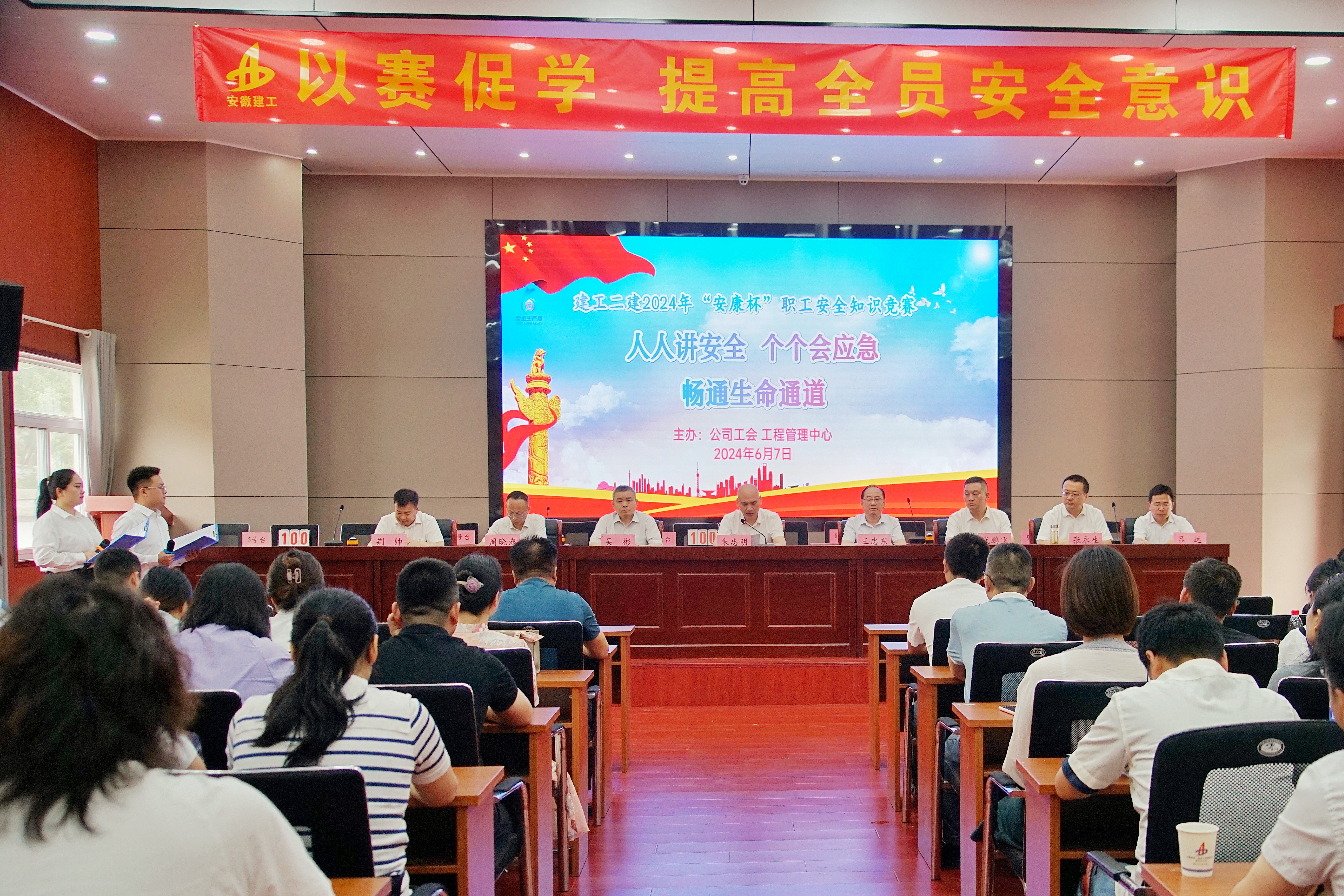 今年6月是第23個全國“安全生產(chǎn)月”。6月7日上午,由建工二建工會、工程管理中心聯(lián)合舉辦的“安康杯”職工安全知識競賽活動如期舉行。建工股份副總經(jīng)理,建工二建黨委書記、董事長朱忠明致開幕辭,活動特別邀請集團(tuán)工程管理中心王忠東主管擔(dān)任比賽評委。公司領(lǐng)導(dǎo)班子成員、機關(guān)部門負(fù)責(zé)人、所屬單位分管領(lǐng)導(dǎo)及相關(guān)科室成員、項目經(jīng)理代表、參賽職工等百余人參加活動。