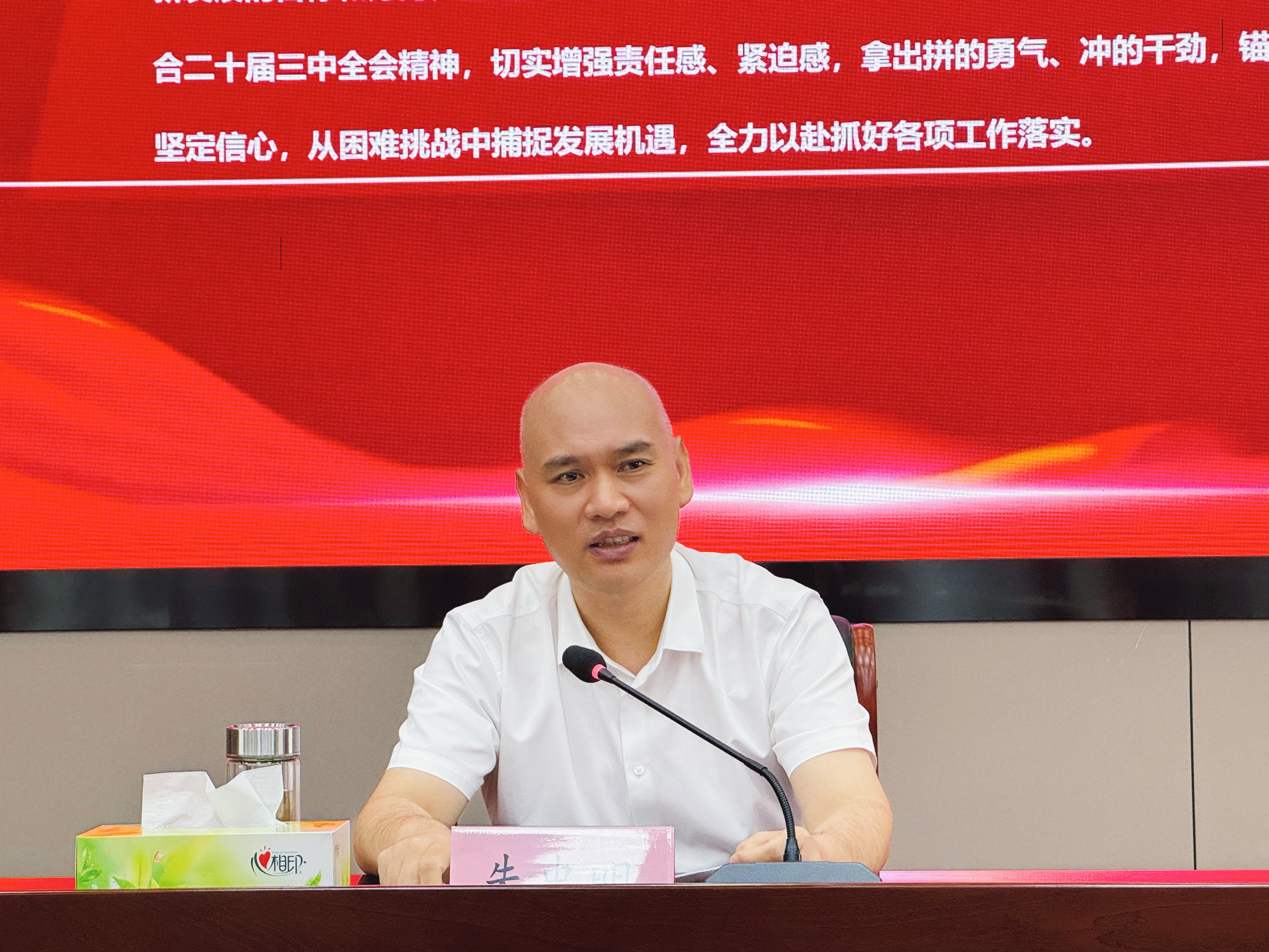 陶良敬就貫徹落實(shí)會(huì)議精神提出三點(diǎn)要求,一要加強(qiáng)組織領(lǐng)導(dǎo),全面系統(tǒng)學(xué)習(xí)全會(huì)精神。二要堅(jiān)持多措并舉,立即掀起學(xué)習(xí)貫徹?zé)岢?。三要?jiān)持學(xué)以致用,結(jié)合年度五項(xiàng)重點(diǎn)工作認(rèn)真抓好全會(huì)精神貫徹落實(shí)。