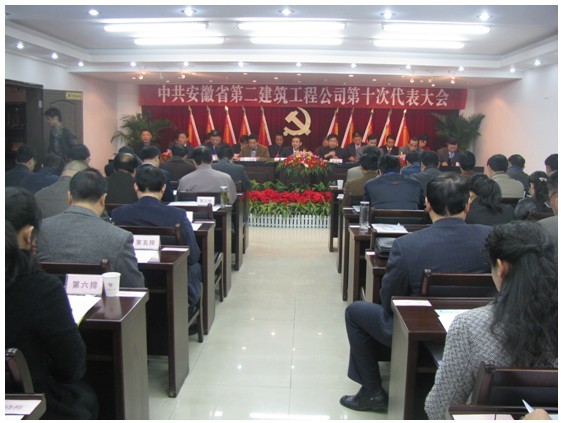 2010年11月25至26日,中共安徽省第二建筑工程公司第十次黨員代表大會隆重召開。來自生產(chǎn)一線、各部門、離退休支部等各個層面的72名黨員代表參加了大會,安徽建工集團有限公司黨委書記張海平、紀(jì)委書記、工會主席劉振武、黨委工作部主任吳曉武等出席大會開幕式。