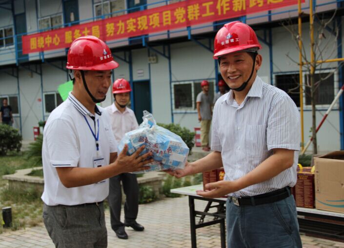 牛曙東副書(shū)記一行還為奮戰(zhàn)在建科院項(xiàng)目的一線職工送上了毛巾、綠豆、白糖、涼茶、風(fēng)油精、十滴水等防暑降溫用品和藥品,并叮囑高溫季節(jié)要合理安排作息時(shí)間,確保施工現(xiàn)場(chǎng)作業(yè)安全,防止出現(xiàn)高溫中暑情況,要站在安全發(fā)展的高度,切實(shí)將防暑降溫工作安排好、落實(shí)好,保障職工安全度夏。