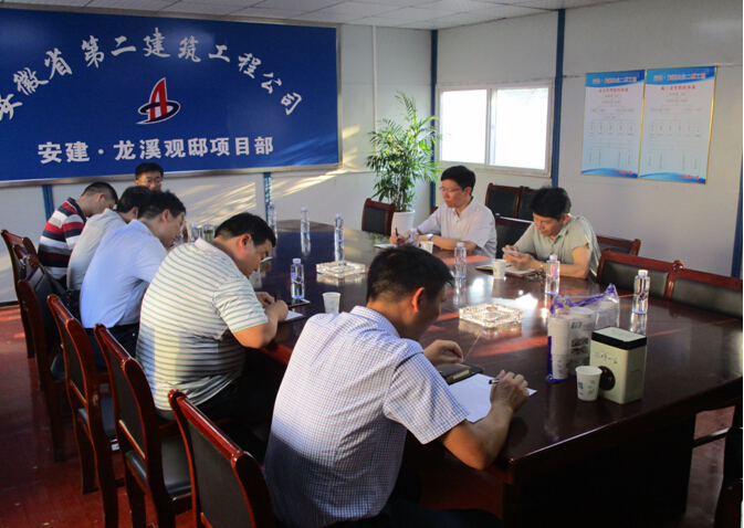 在隨后召開的現(xiàn)場(chǎng)工作會(huì)上,王厚良副總經(jīng)理對(duì)安建·龍溪山莊工程質(zhì)量和目前所取得的成績(jī)給予了充分肯定,對(duì)項(xiàng)目近期工作提出四點(diǎn)要求,一是要高標(biāo)準(zhǔn)、嚴(yán)要求,抓好現(xiàn)場(chǎng)安全文明施工和標(biāo)準(zhǔn)化施工,提高安徽建工集團(tuán)在當(dāng)?shù)氐挠绊懥?;二是要高度重視安全質(zhì)量,確保安全無(wú)事故,質(zhì)量無(wú)缺陷;三是要強(qiáng)化目標(biāo)責(zé)任制,充分調(diào)動(dòng)全體員工的積極性;四是要加強(qiáng)人才培養(yǎng),對(duì)青年人,工作上要交真本領(lǐng),業(yè)務(wù)上要經(jīng)常開展技能培訓(xùn)。