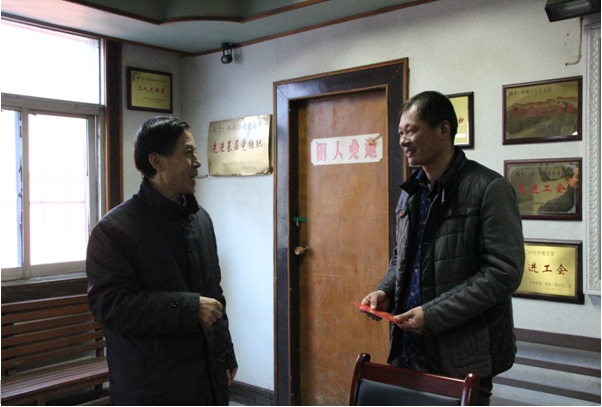 2017年1月16日下午,集團(tuán)公司總經(jīng)理劉家靜、工會(huì)主席徐曉光、工會(huì)副主席吳曉伍一行來到公司,開展春節(jié)前對(duì)困難職工的走訪慰問活動(dòng)。公司黨委書記劉賢奇、工會(huì)主席李林等陪同慰問。