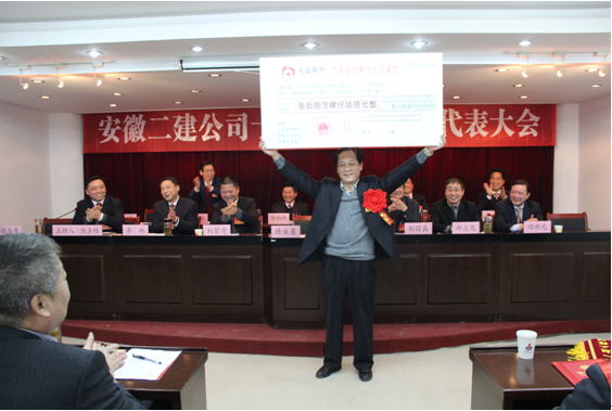 最后,黨委書記劉賢奇同志作了《轉(zhuǎn)變觀念 統(tǒng)一思想 增強(qiáng)信心 開拓進(jìn)取 為開創(chuàng)一流安徽二建新局面而努力奮斗》的總結(jié)講話。劉書記首先對(duì)2016年公司各項(xiàng)工作所取得的成績(jī)給予了充分肯定,對(duì)受表彰的先進(jìn)集體和個(gè)人表示了熱烈的祝賀,向辛勤工作在各個(gè)崗位上的全體二建員工致以誠摯的問候!劉書記強(qiáng)調(diào),二建的掘起依賴全體二建人的共同努力,為此,提出幾點(diǎn)意見:一是以學(xué)習(xí)黨的十八屆六中全會(huì)為主線,進(jìn)一步加強(qiáng)理論武裝。堅(jiān)持以領(lǐng)導(dǎo)干部為重點(diǎn)抓好黨委中心組學(xué)習(xí),同時(shí)深入抓好全體黨員的經(jīng)常性學(xué)習(xí)教育活動(dòng);二是以弘揚(yáng)求真務(wù)實(shí)之風(fēng)為依托,進(jìn)一步改進(jìn)工作作風(fēng)。工作要力求精益求精,做出品牌、做出特色,敢于批評(píng)和自我批評(píng),虛心接受各方面意見,敢于沖破束縛我們手腳的各種框框和體制障礙,實(shí)現(xiàn)政治、經(jīng)濟(jì)、精神文明的協(xié)調(diào)發(fā)展。三是以建設(shè)“四好”領(lǐng)導(dǎo)班子為重點(diǎn),進(jìn)一步加強(qiáng)領(lǐng)導(dǎo)班子和黨員隊(duì)伍建設(shè)。堅(jiān)持把企業(yè)經(jīng)營業(yè)績(jī)考核結(jié)果作為評(píng)價(jià)開展“四好”班子建設(shè)的重要依據(jù),堅(jiān)持定量考核與定性評(píng)價(jià)相結(jié)合,努力達(dá)到上級(jí)黨委、領(lǐng)導(dǎo)班子自身和職工群眾“三滿意”的效果。四是以增強(qiáng)企業(yè)凝聚力、向心力為目標(biāo),進(jìn)一步做好職工思想政治工作和企業(yè)文化建設(shè)。五是以弘揚(yáng)企業(yè)廉潔文化的抓手,進(jìn)一步穩(wěn)固企業(yè)反腐倡廉體系。要求公司各級(jí)管理人員要貫徹落實(shí)好“一崗雙責(zé)”,修訂完善黨內(nèi)各項(xiàng)考核制度,形成用制度管人、用制度管事、用制度管權(quán)的工作格局。六是以創(chuàng)建和諧企業(yè)為載體,進(jìn)一步做好群團(tuán)工作。按照黨建帶群團(tuán)組織建設(shè)的要求,按照總攬全局、協(xié)調(diào)各方的原則,切實(shí)發(fā)揮好公司黨委領(lǐng)導(dǎo)核心和政治核心作用。讓全體二建人在集團(tuán)和公司兩級(jí)黨政班子的堅(jiān)強(qiáng)領(lǐng)導(dǎo)下,上下同心,精誠團(tuán)結(jié),以高度的時(shí)代使命感和政治責(zé)任感,拼博進(jìn)取,為開創(chuàng)安徽二建改革發(fā)展新局面、實(shí)現(xiàn)安徽二建宏偉目標(biāo)而不懈奮斗!