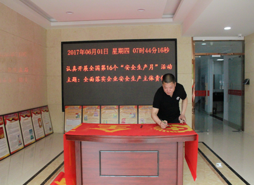 6月1日上午,安全管理部精心準(zhǔn)備,利用安全宣傳展板,懸掛橫幅、電子屏幕播放“安全生產(chǎn)月”主題活動等形式進行宣傳,并與工會共同開展“安全生產(chǎn)月”宣誓簽名活動。公司領(lǐng)導(dǎo)班子成員及各部門職工100余人參加宣誓并鄭重簽名。