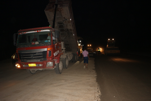 白天,烈日炎炎,驕陽似火,當(dāng)大多數(shù)人對室外的高溫望而卻步,躲在空調(diào)房內(nèi)納涼避暑之時,卻有這樣一群可敬的人頂著烈日、冒著酷暑,揮汗如雨,在高溫的“烤”驗下仍堅守崗位。他們平凡無奇,對高溫也并非有特別的忍耐力,只因身上肩負著“一流建工夢”的擔(dān)子,讓他們堅持著。夜晚,為了推進太和ppp項目建設(shè)工期進度,照樣加班加點的干。夜晚九點多的施工現(xiàn)場,自卸車川流不息,穿著橘黃色馬甲的施工人員,揮舞著導(dǎo)流棒對來往車輛進行分流,工人正在鋪裝瀝青,壓路機來回壓實,熱火朝天。