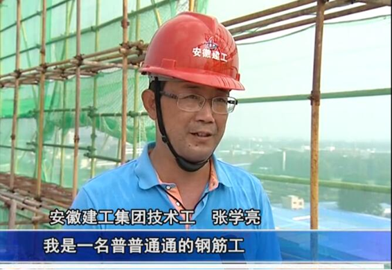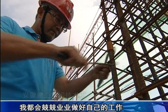 在商務(wù)樓十四層梁柱鋼筋綁扎作業(yè)施工現(xiàn)場,項目部鋼筋班組工人張學亮接受了電視臺的采訪,他向記者重點介紹了項目工程目前的施工進展情況、工作進度節(jié)點安排、夏季防暑降溫工作安排和平時在工作中遇到的施工工藝上的重難點問題所做出的積極努力。