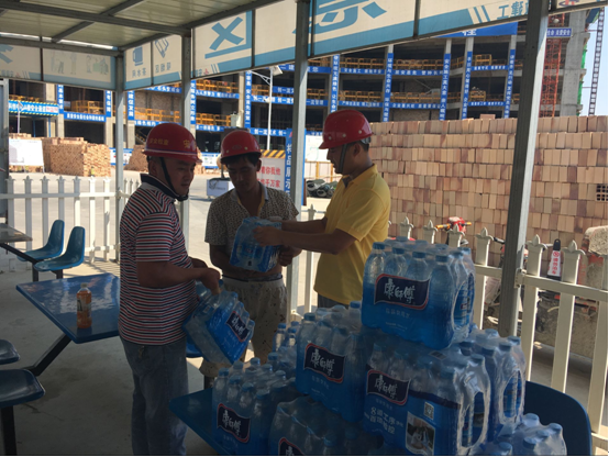 生物島一期項(xiàng)目部深入貫徹落實(shí)上級(jí)領(lǐng)導(dǎo)關(guān)于高溫作業(yè)有關(guān)要求以及防暑降溫用品及時(shí)發(fā)放的指示,由項(xiàng)目團(tuán)支部牽頭,項(xiàng)目各部門(mén)積極配合,為一線勞務(wù)作業(yè)人員分發(fā)礦泉水、綠茶、綠豆湯、十滴水等防暑降溫用品,并傳授預(yù)防中暑技巧,調(diào)整高溫作息時(shí)間,確保高溫作業(yè)環(huán)境下一線作業(yè)人員能有效防止意外發(fā)生,為項(xiàng)目的順利推進(jìn)保駕護(hù)航。
