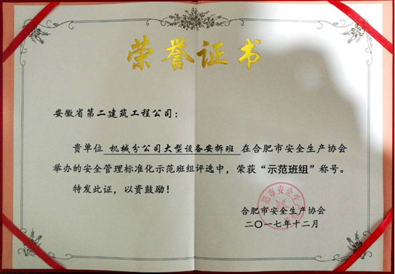 近日在合肥市安全生產(chǎn)協(xié)會第二屆第三次會員大會上傳來喜訊,機械分公司大型設備安拆班榮獲“示范班組”榮譽稱號。本次評選活動由合肥市安全生產(chǎn)協(xié)會主辦,來自市內數(shù)十家企業(yè)的近百個班組參與評選。