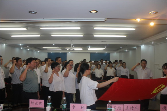 大會(huì)在莊嚴(yán)的國(guó)歌聲中拉開(kāi)帷幕。仇多維宣讀安徽二建公司“一先三優(yōu)”表彰決定,鼓勵(lì)先進(jìn),激勵(lì)廣大黨員同志向先進(jìn)看齊,公司領(lǐng)導(dǎo)班子成員為受表彰的組織和個(gè)人頒發(fā)榮譽(yù)證書(shū)。隨后,在公司黨委書(shū)記劉賢奇的帶領(lǐng)下,五名新黨員進(jìn)行入黨宣誓,全體黨員同志重溫入黨誓詞。