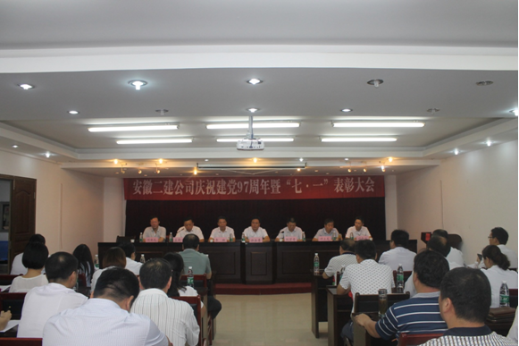 為慶祝中國(guó)共產(chǎn)黨成立97周年,表彰公司先進(jìn)基層黨組織、優(yōu)秀共產(chǎn)黨員、優(yōu)秀共產(chǎn)黨員示范崗、優(yōu)秀黨務(wù)工作者,7月3日上午,安徽二建公司召開(kāi)慶祝建黨97周年暨“七一”表彰大會(huì),公司領(lǐng)導(dǎo)班子成員,機(jī)關(guān)全體黨員、所屬各單位黨政領(lǐng)導(dǎo)班子成員(黨員)、所屬基層黨支部支委成員、受表彰的先進(jìn)黨組織代表和優(yōu)秀共產(chǎn)黨員、優(yōu)秀共產(chǎn)黨員示范崗和優(yōu)秀黨務(wù)工作者參加會(huì)議。會(huì)議由公司紀(jì)委書(shū)記仇多維主持。