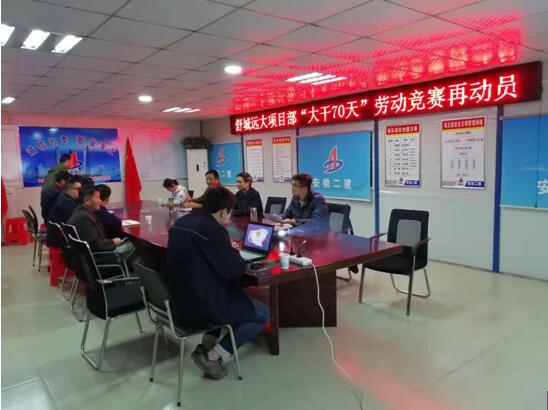 吳主席一行先行察看項目建設(shè)進展情況,仔細詢問工程進度、質(zhì)量、安全和效益情況,詳細了解競賽實施開展情況。隨后,在項目部會議室召開了勞動競賽再動員會議并聽取“工人先鋒號”創(chuàng)建活動匯報。