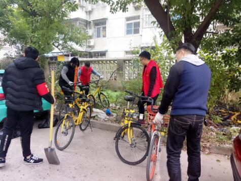 早上8點,所有參加活動的青年志愿者準(zhǔn)時在公司大門前集合, 前往裕溪路社居委,在社區(qū)工作人員的配合下清理公司生活區(qū)綠化帶中的各類垃圾以及隱藏在綠化帶中的破舊共享單車。