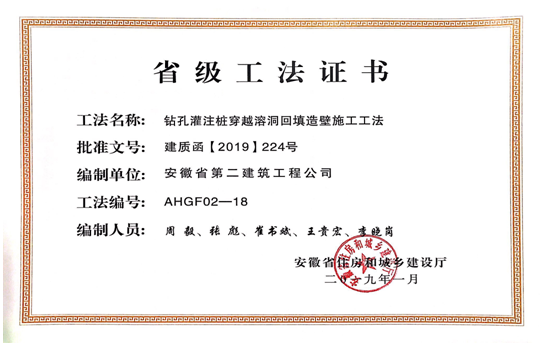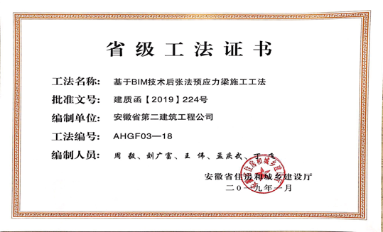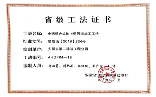 1月23日,安徽省住房和城鄉(xiāng)建設(shè)廳組織省級(jí)工法評(píng)審委員會(huì),對(duì)企業(yè)申報(bào)的277項(xiàng)工法進(jìn)行了評(píng)審并予以公示。經(jīng)審定,“預(yù)應(yīng)力型鋼裝配式組合內(nèi)支撐施工工法”等103項(xiàng)工法為安徽省2018年度省級(jí)工法。由公司編寫(xiě)的《鉆孔灌注樁穿越溶洞回填造壁施工工法》、《基于BIM技術(shù)后張法預(yù)應(yīng)力梁施工工法》、《全鋼組合式地上通風(fēng)系統(tǒng)施工工法》3項(xiàng)工法被評(píng)為省級(jí)工法。
