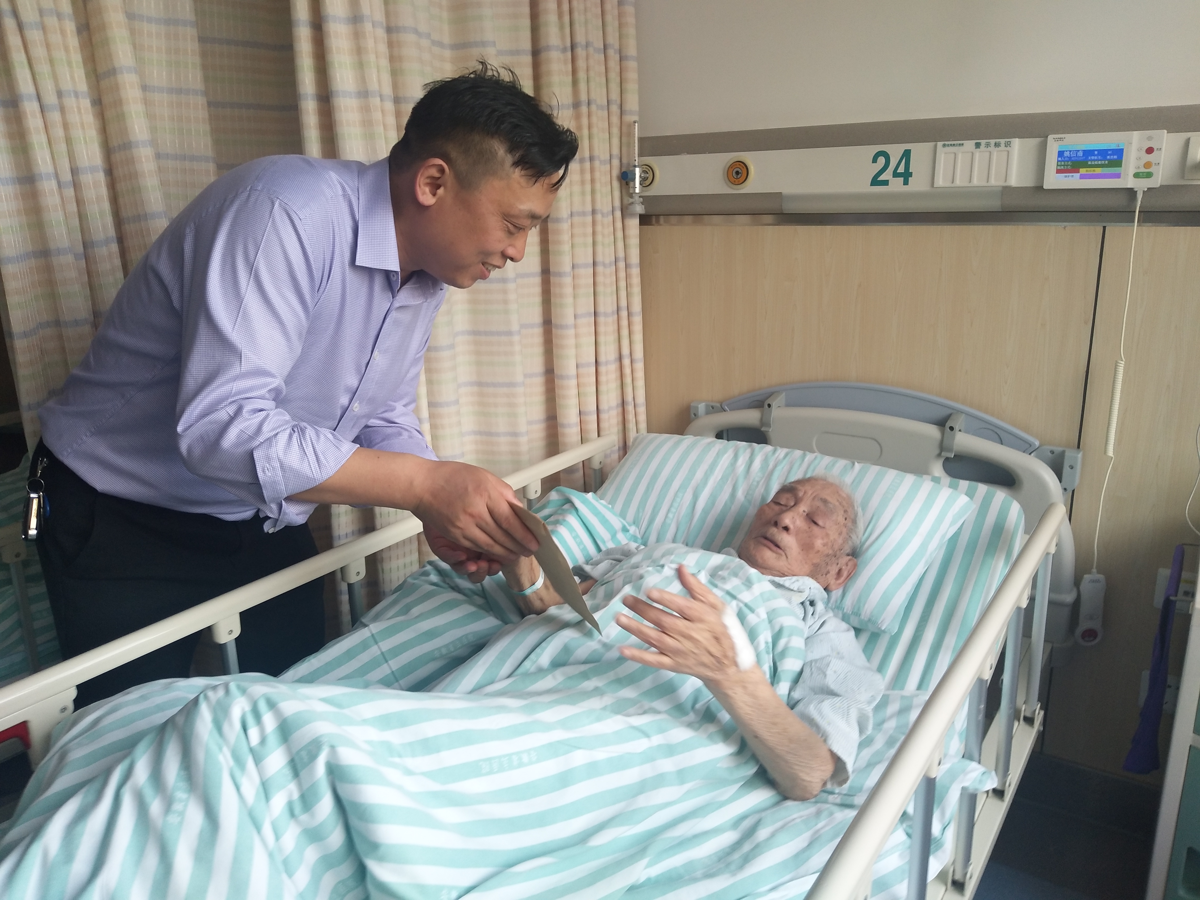姚老今年93歲,1945年10月參加革命,戎馬生涯大半輩,為革命立過(guò)戰(zhàn)功,受過(guò)傷,在二建公司生產(chǎn)建設(shè)中做過(guò)突出貢獻(xiàn)。仇多維代表公司向姚老表示慰問(wèn)并送上壹仟元慰問(wèn)金,感謝姚老多年來(lái)一直對(duì)公司改革發(fā)展的關(guān)心和支持,希望姚老身體早日康復(fù)、幸??鞓?lè)的生活。仇多維再三叮囑離休辦的同志一定要高度關(guān)心愛(ài)護(hù)離休干部“政治、生活兩個(gè)待遇”落實(shí)問(wèn)題,為離休老干部提供良好的服務(wù)保障工作。