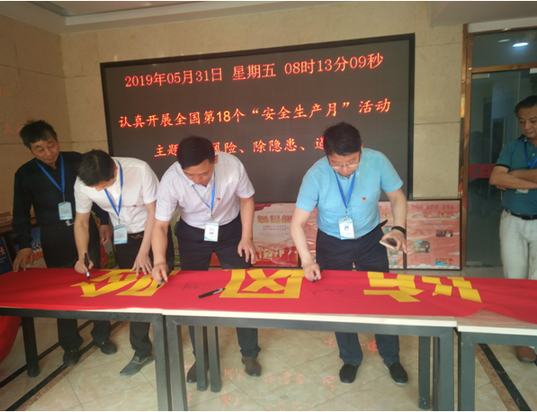 2019年5月31日,公司安全管理部、工會在公司大院舉行了全國第十八個“安全生產(chǎn)月”活動啟動儀式,公司機關全體職工參加。總經(jīng)理陸勤斌作啟動講話,指出安全生產(chǎn)工作的重要性和“安全生產(chǎn)月”活動的意義。分管安全副總經(jīng)理葉和永帶領全體職工進行了安全宣誓,隨后,在印有“安全生產(chǎn)月”主題“防風險 除隱患 遏事故”的橫幅上簽名。