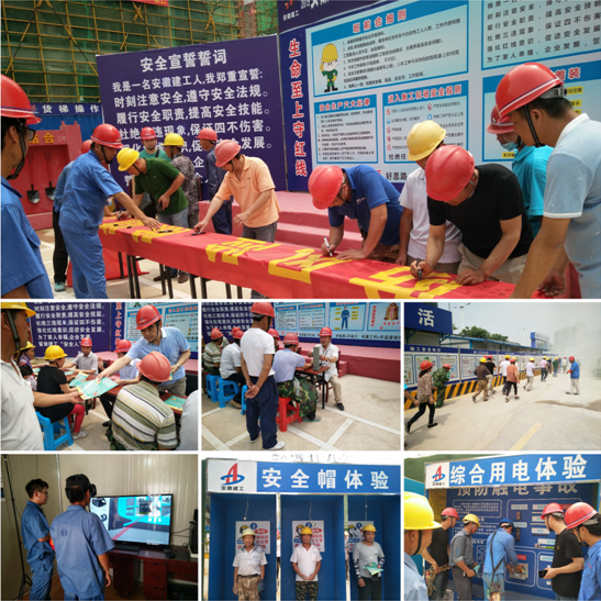 活動當(dāng)天,共發(fā)放安全宣傳資料100余份,接受項目職工咨詢50余人次;開展預(yù)防高墜、中暑及火災(zāi)救援演練;給工友們體檢,告知夏季高溫季節(jié)施工注意事項;帶工友們觀看圖片展覽,講解安全生產(chǎn)知識,到安全教育體驗館進行實體和VR虛擬體驗;現(xiàn)場全體人員參與宣誓及簽名活動?,F(xiàn)場活動結(jié)束后,安全管理部在會議室開展安全主題宣講活動,帶領(lǐng)項目職工學(xué)習(xí)《安全生產(chǎn)條例》及《建筑安全生產(chǎn)標(biāo)準(zhǔn)化示范工地評價標(biāo)準(zhǔn)》(DB34/T5040-2016),組織項目管理人員開展安全生產(chǎn)經(jīng)驗交流會,總結(jié)工作亮點,查找不足,促進今后工作的順利開展。
