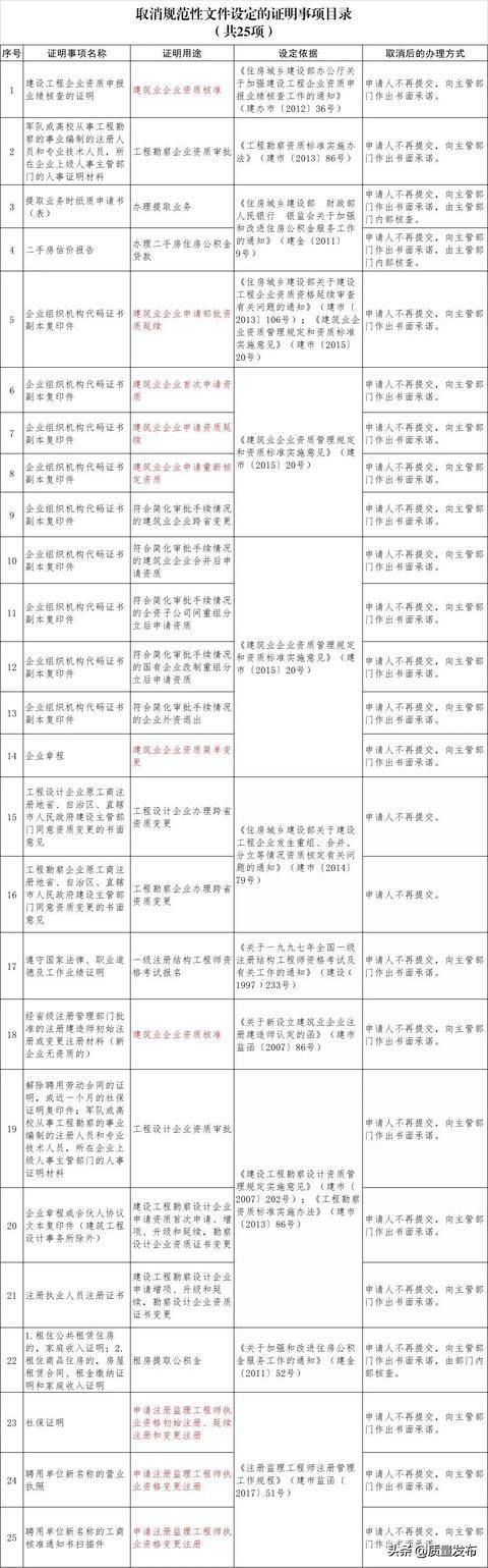 取消規(guī)范性文件設(shè)定的證明事項(xiàng)目錄