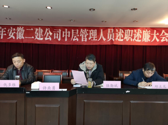 為認(rèn)真總結(jié)2019年度公司各部門(mén)和分公司的主要工作,進(jìn)一步強(qiáng)化中層管理人員的責(zé)任意識(shí),提高各部門(mén)和分公司工作能力,打造一支高素質(zhì)的管理團(tuán)隊(duì),2020年1月6日,公司召開(kāi)2019年度中層管理人員述職述廉大會(huì)。公司總經(jīng)理陸勤斌及領(lǐng)導(dǎo)班子成員、中層副職以上人員與會(huì)。大會(huì)由黨委副書(shū)記、紀(jì)委書(shū)記仇多維主持。