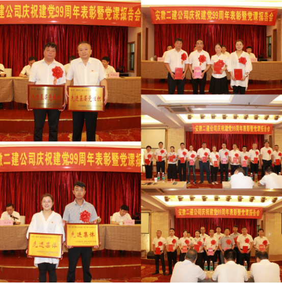 為隆重慶祝中國共產(chǎn)黨成立99周年,進(jìn)一步加強(qiáng)基層黨組織建設(shè)和黨員隊(duì)伍建設(shè),6月30日上午,安徽二建公司黨委召開慶祝建黨99周年表彰暨黨課報告會。公司領(lǐng)導(dǎo)、機(jī)關(guān)全體黨員、所屬單位領(lǐng)導(dǎo)班子成員(黨員)、受表彰的先進(jìn)基層黨組織代表、優(yōu)秀共產(chǎn)黨員、優(yōu)秀黨務(wù)工作者、新冠肺炎疫情防控工作先進(jìn)集體和先進(jìn)個人參加會議。會議由公司黨委副書記、紀(jì)委書記仇多維主持。