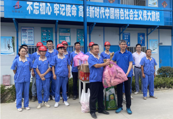 7月31日下午,烈日炎炎,暑氣蒸人,公司副總經(jīng)理余華恒、工會(huì)女工主任王俊一行赴文一·塘溪津門(mén)、文一·春風(fēng)里項(xiàng)目送清涼,看望和慰問(wèn)奮戰(zhàn)在施工一線項(xiàng)目管理人員。