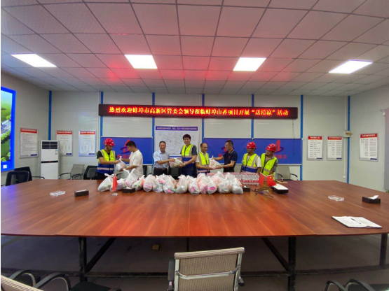 8月11日下午,蚌埠市高新區(qū)管委會(huì)韓永林,高新投資集團(tuán)、高新建發(fā)公司總經(jīng)理陳輝蒞臨安徽二建蚌埠山香安置房EPC項(xiàng)目開展“送清涼”活動(dòng),為項(xiàng)目送來了藿香正氣水、綠豆、菊花茶、花露水等防暑降溫物品。韓永林詢問了生產(chǎn)進(jìn)度、質(zhì)量安全施工以及高溫天氣項(xiàng)目部采取的防暑降溫措施等方面情況,同時(shí)要求,一定要確保高溫天氣下現(xiàn)場(chǎng)作業(yè)人員的安全,切實(shí)提高對(duì)一線作業(yè)職工的關(guān)心、關(guān)懷,避免 “非戰(zhàn)斗減員”情況發(fā)生,把安全放在首位,做到安全文明施工。