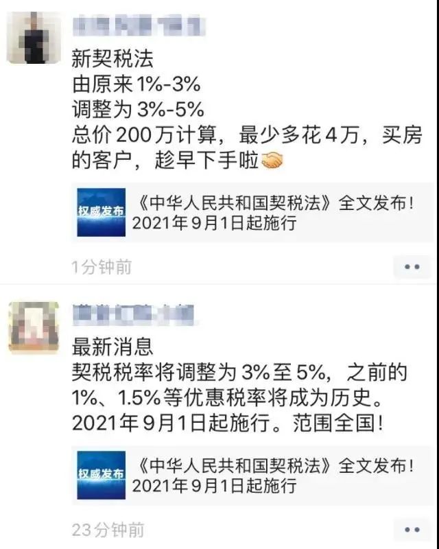 一時間“房價要漲,契稅要漲,買房要趁早”的消息在朋友圈廣泛流傳,甚至有一部分房產中介開始借此炒作買房恐慌。