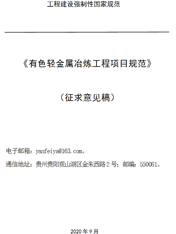 《有色輕金屬冶煉工程項目規(guī)范(征求意見稿)》