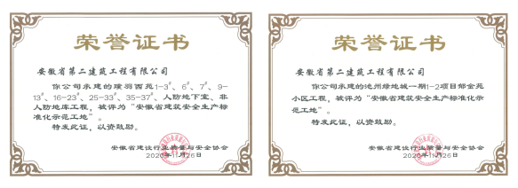 五年來,創(chuàng)建國家AAA級安全文明標(biāo)準(zhǔn)化工地2項,省級安全生產(chǎn)標(biāo)準(zhǔn)化示范工地24項、市級28項、集團(tuán)級48項,安徽二建以匠人之心在一磚一瓦建成的樓宇之間,構(gòu)筑安全防線,建設(shè)美好生活。