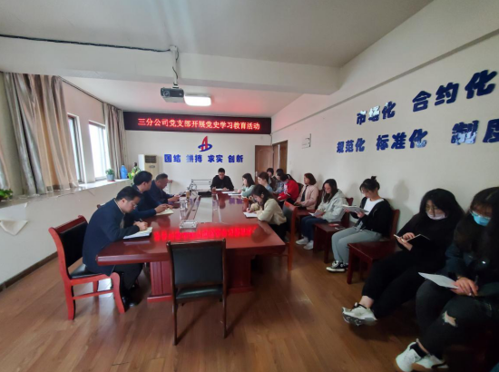 三分公司黨支部開展黨史學(xué)習(xí)教育活動(dòng),分公司機(jī)關(guān)全體人員參加,活動(dòng)由支部書記陳習(xí)武主持。首先,陳習(xí)武帶領(lǐng)大家學(xué)習(xí)了二建黨發(fā)【2021】13號文《安徽二建公司黨委關(guān)于開展黨史學(xué)習(xí)教育的工作方案》,并就分公司黨支部的黨史學(xué)習(xí)教育活動(dòng)做了詳細(xì)安排部署,要求全體黨員干部把思想和行動(dòng)統(tǒng)一到集團(tuán)、公司黨委的決策部署上來,高標(biāo)準(zhǔn)、高質(zhì)量完成黨史學(xué)習(xí)教育各項(xiàng)任務(wù),努力做到學(xué)史明理、學(xué)史增信、學(xué)史崇德、學(xué)史力行,以優(yōu)異成績迎接建黨100周年。隨后,陳習(xí)武帶領(lǐng)大家上了一堂生動(dòng)的黨史課?!皬纳虾J瘞扉T到嘉興南湖,一艘小小紅船承載著人民的重托、民族的希望,越過急流險(xiǎn)灘,穿過驚濤駭浪,成為領(lǐng)航中國行穩(wěn)致遠(yuǎn)的巍巍巨輪。”。通過視頻和講解相結(jié)合,為大家敘述了從中國共產(chǎn)黨成立到建立新中國,28年間,黨召開了一次次重要會(huì)議。這些會(huì)議作出的決策,指引了中國革命的方向,推動(dòng)了歷史進(jìn)程,具有里程碑意義。大家紛紛表示,將從黨史中汲取智慧和力量,堅(jiān)定信仰信念,進(jìn)一步提高黨性修養(yǎng),不忘初心,以實(shí)際行動(dòng)發(fā)揮好黨員干部的模范帶頭作用,積極投入到干事創(chuàng)業(yè)中去,為分公司的發(fā)展添磚加瓦。