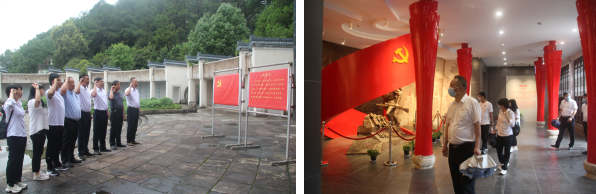 6月20日上午,分公司黨支部組織黨員干部、入黨積極分子共計(jì)20余人,從銅陵吾悅?cè)A府項(xiàng)目部出發(fā),前往涇縣新四軍軍部舊址和皖南事變烈士陵園,開展黨史學(xué)習(xí)教育現(xiàn)場(chǎng)教學(xué),深刻緬懷革命先烈的豐功偉績(jī)。一行人先后瞻仰了軍長(zhǎng)葉挺、副軍長(zhǎng)項(xiàng)英等老一輩革命家的辦公室和起居室,觀看了革命文物、史料圖片和偉人題字,實(shí)地感受革命隊(duì)伍在艱苦的物質(zhì)環(huán)境和復(fù)雜的政治環(huán)境下,矢志不渝、抗戰(zhàn)到底的鐵軍精神,洗滌了黨員們的心靈,激勵(lì)了黨員們的斗志。在皖南事變烈士陵園紀(jì)念廣場(chǎng),黨員們舉行了莊重的宣誓儀式,重溫了入黨誓詞。