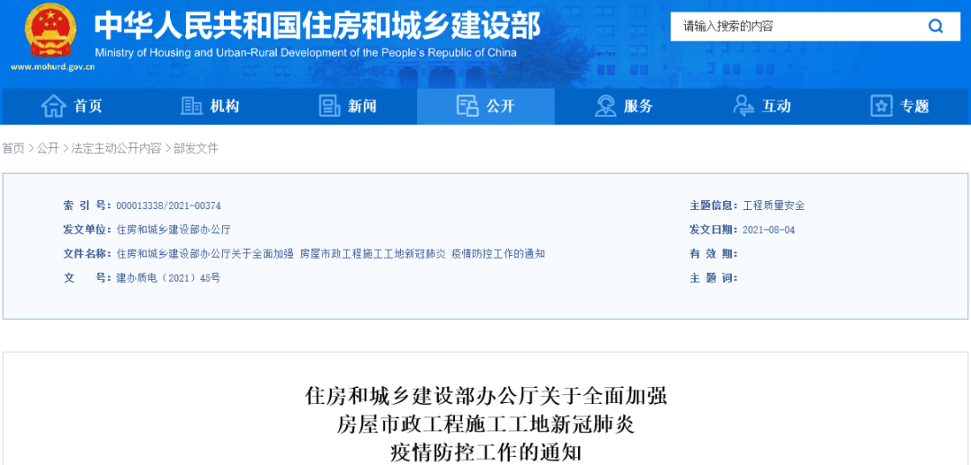 為堅決貫徹落實黨中央、國務院關于新冠肺炎疫情防控的部署要求,持續(xù)深入做好房屋市政工程施工工地(以下簡稱“施工工地”)疫情防控工作,切實保障建筑施工領域從業(yè)人員身體健康和生命安全,住房和城鄉(xiāng)建設部辦公廳日前印發(fā)通知,要求全面加強施工工地疫情防控工作。