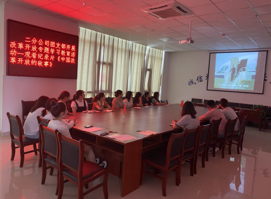 會(huì)上,分公司團(tuán)支部組織開(kāi)展改革開(kāi)放專(zhuān)題學(xué)習(xí)教育活動(dòng),觀(guān)看紀(jì)錄片《中國(guó)改革開(kāi)放的故事》。該片是由英國(guó)廣播公司制片人邁克爾·伍德撰稿并主持,主要圍繞“人心所向”、“走向世界”、“中國(guó)創(chuàng)造”、“綠色中國(guó)夢(mèng)”以及“未來(lái)之路”五個(gè)方面所展開(kāi),從普通中國(guó)人的視角,以相當(dāng)接地氣的方式講述了中國(guó)的歷史和傳承,透過(guò)鮮活的鏡頭語(yǔ)言,客觀(guān)展示出中國(guó)改革開(kāi)放的脈絡(luò)和成就。