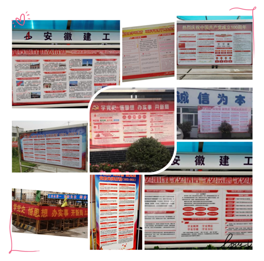 為慶祝中國共產(chǎn)黨建黨成立100周年,鞏固“不忘初心、牢記使命”主題教育成果,引導廣大職工緊緊圍繞學懂弄通做實黨的創(chuàng)新理論,做到學史明理、學史增信、學史崇德、學史力行,分公司黨支部號召各項目部開展“制展版 學黨史”活動。