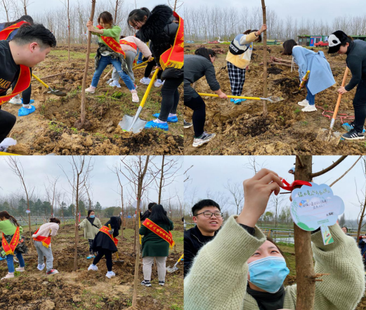 整個(gè)活動(dòng)一直進(jìn)行到中午12點(diǎn),他們忘記了寒冷,忘記了勞累,只記得手中的工具和種下的樹(shù)苗,在大家的辛勤勞動(dòng)下,無(wú)數(shù)株鮮活的生命在微風(fēng)的吹拂下仿佛吐出了點(diǎn)點(diǎn)綠芽,春天的訊息在枝頭跳動(dòng),大家植樹(shù)的激情在心底躍動(dòng),他們或是在自己栽種的樹(shù)旁合影留念,或是在一旁靜靜地看著自己的勞動(dòng)成果。