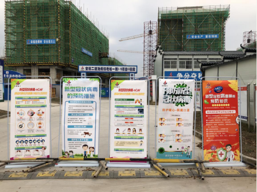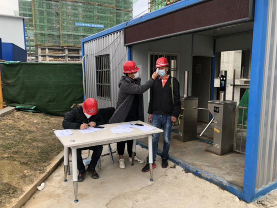 項(xiàng)目部按計(jì)劃搶抓工期,全力推進(jìn)項(xiàng)目建設(shè)的同時(shí),以做好項(xiàng)目現(xiàn)場疫情防控為前提,實(shí)行“半封閉+強(qiáng)防護(hù)”管理,在備足口罩、消毒液、洗手液等防護(hù)用品的同時(shí),嚴(yán)格執(zhí)行門禁、實(shí)名制管理制度,做好每天體溫測量和記錄臺賬,食堂堅(jiān)持嚴(yán)把食品五道關(guān),嚴(yán)格執(zhí)行分餐制,避免聚集,提倡工人、管理人員居住在現(xiàn)場員工和工人宿舍,并按每間寢室最多居住不超過4人的標(biāo)準(zhǔn)安排住宿,最大程度上保障現(xiàn)場作業(yè)人員的身體健康與生命安全,確保項(xiàng)目復(fù)工安全有序進(jìn)行。“36.6℃,體溫正常,請戴好口罩!”走進(jìn)項(xiàng)目部,隨處可見新冠肺炎疫情防控的宣傳標(biāo)語,廣播中一遍又一遍地重復(fù)播放著疫情防控的注意事項(xiàng)。