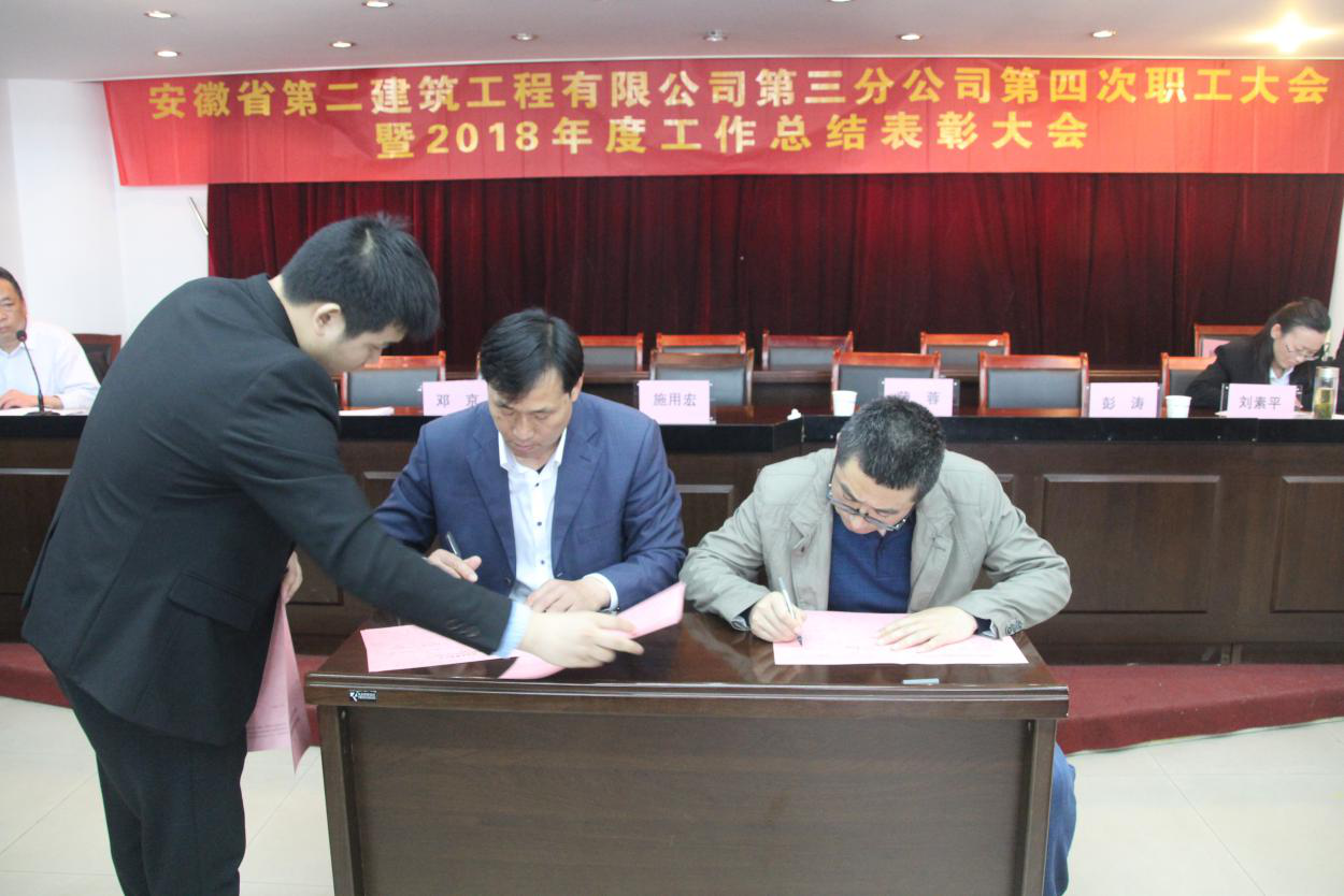 會(huì)上,公司黨委工作部對(duì)分公司領(lǐng)導(dǎo)班子及班子成員進(jìn)行民主測(cè)評(píng),對(duì)后備干部進(jìn)行民主推薦;馬福才經(jīng)理和各項(xiàng)目經(jīng)理簽訂《目標(biāo)責(zé)任狀》、《勞動(dòng)競(jìng)賽責(zé)任狀》,為各責(zé)任主體完成全年指標(biāo)下達(dá)了“任務(wù)書”、確立了考核依據(jù);對(duì)過去一年在各自崗位上作出突出貢獻(xiàn)的先進(jìn)科室、項(xiàng)目及個(gè)人進(jìn)行表彰,更好地發(fā)揮了榜樣引領(lǐng)作用,促進(jìn)形成崇尚先進(jìn)、學(xué)習(xí)先進(jìn)、爭(zhēng)當(dāng)先進(jìn)的良好氛圍。