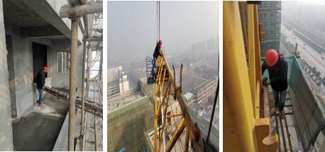 對塔吊大臂、附臂、附臂套架、人貨電梯標(biāo)準節(jié)及導(dǎo)軌進行檢查