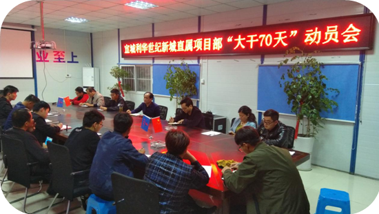 為響應(yīng)公司“大干70天”勞動競賽活動號召,進(jìn)一步激發(fā)項(xiàng)目參建隊(duì)伍的能動性和協(xié)調(diào)性、加快生產(chǎn)進(jìn)度,宣城利華項(xiàng)目部立即召開動員大會,迅速落實(shí)大干目標(biāo),全面掀起生產(chǎn)高潮。