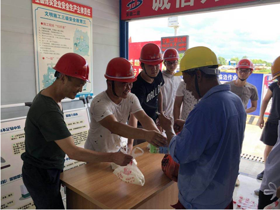 項(xiàng)目部另外向各班組長發(fā)放了防暑藥品、白糖、綠豆,由各班組長統(tǒng)一使用。此次送清涼活動獲得圓滿成功,給項(xiàng)目部全體成員送去了絲絲清涼。炎炎夏日送清涼,滴滴關(guān)懷沁人心。大家齊心協(xié)力,共戰(zhàn)高溫,頭頂?shù)牧胰蘸孟褚膊荒敲磸?qiáng)烈了!