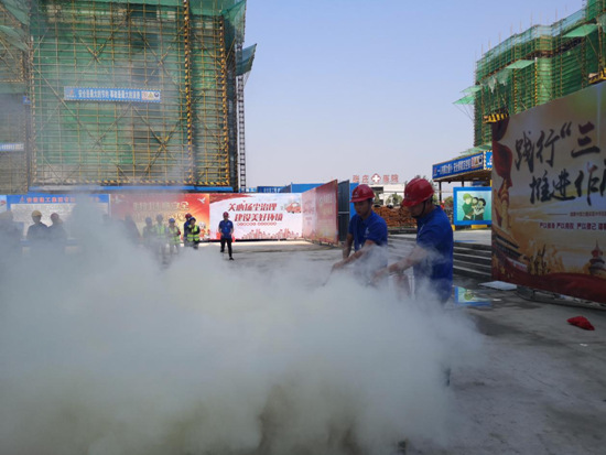 啟動儀式上,一分公司副經(jīng)理崔俊對本次安全生產(chǎn)月活動主題、活動主要內(nèi)容進(jìn)行了宣貫,并對后期安全生產(chǎn)工作進(jìn)行安排部署,隨后在安全負(fù)責(zé)人的帶領(lǐng)下莊嚴(yán)宣誓,并有序地在宣誓標(biāo)語橫幅上簽名。項(xiàng)目人員還觀摩學(xué)習(xí)了滅火器的正確使用方法以及對因高空墜物受傷人員的緊急處理演示。